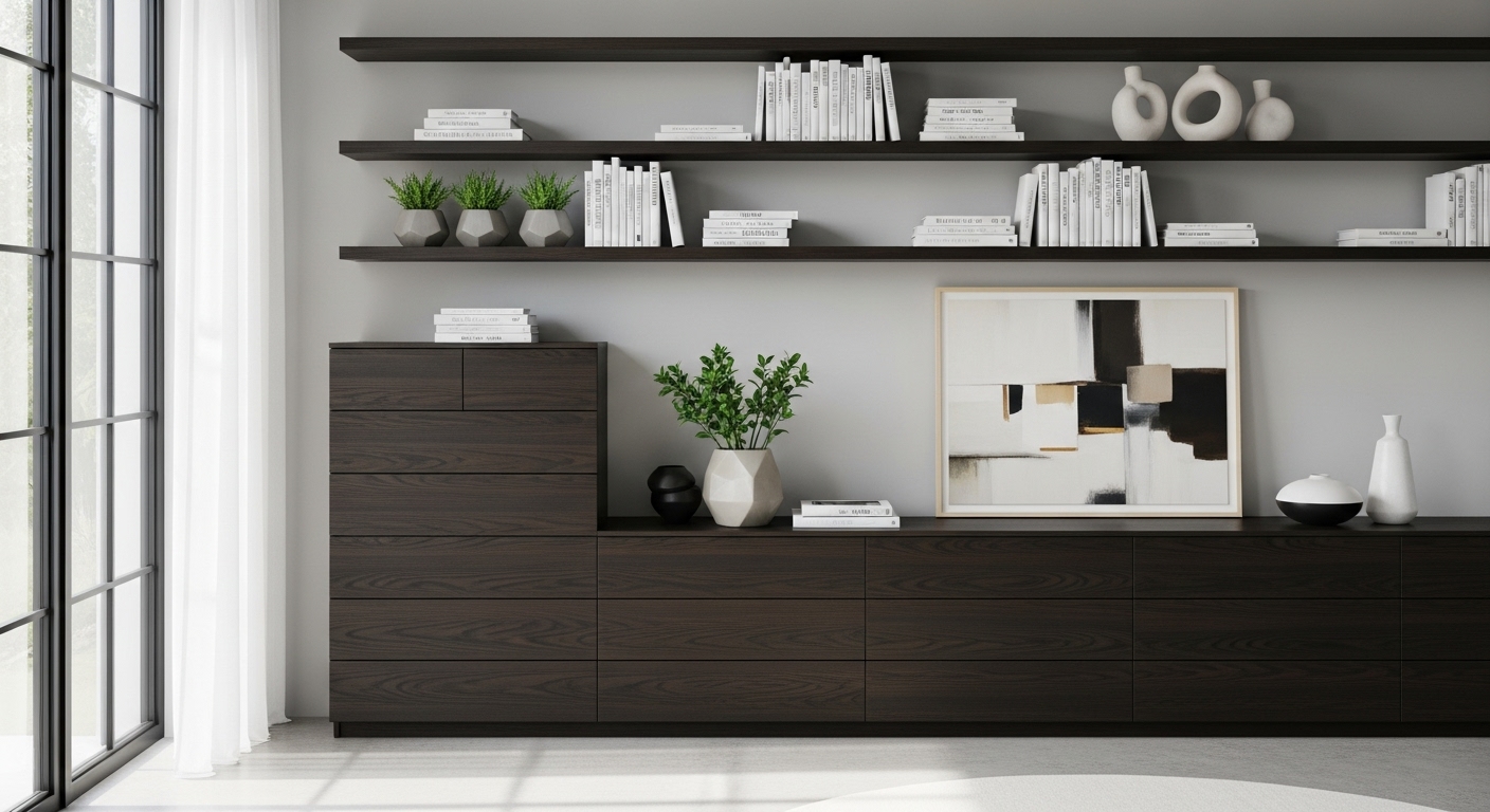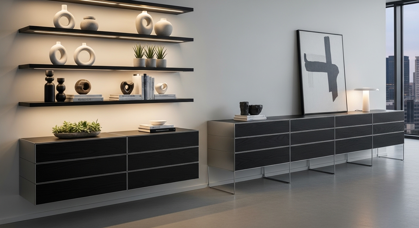 Zoekt u meubels die esthetiek combineren met functionaliteit? Onze collectie planken en ladekasten is een harmonieuze mix van moderne stijl en materialen van de hoogste kwaliteit. Van ruime ladekasten met schuifdeuren tot hoge boekenkasten voor uw boekencollectie, u vindt de perfecte oplossing voor uw huis.